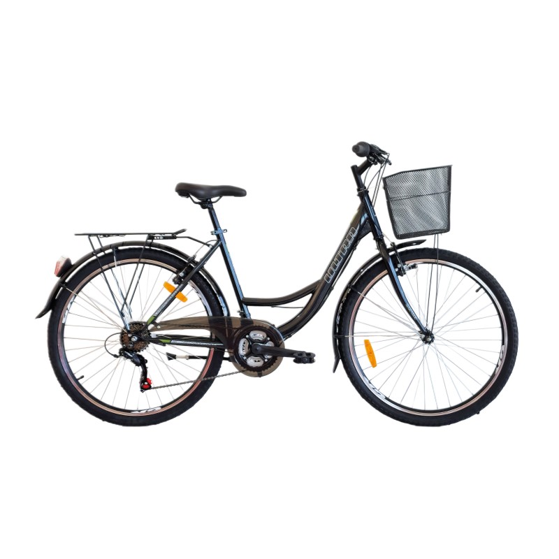 Opremljen je praktičnom prednjom košarom i blatobranima, idealan za svakodnevne obaveze i lagane gradske vožnje.