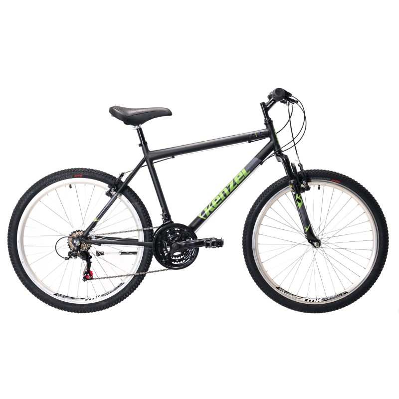 Kenzel MTB bicikl s čeličnim okvirom i kotačima od 26” idealan je za rekreativnu vožnju i svakodnevnu upotrebu. Opremljen pouzdanim Shimano Tourney mjenjačima s 18 brzina, omogućuje jednostavno i ugodno mijenjanje brzina. V-brake kočnice osiguravaju sigurnost, dok robusne gume pružaju stabilnost na različitim podlogama.